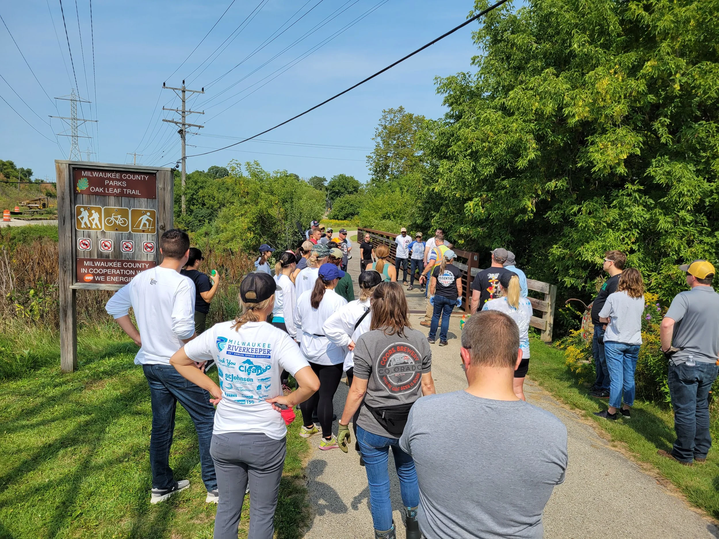 Sweet Water and Molson Coors at Koch Woodlands removing buckthorn, river debris, and laying down a walking path
